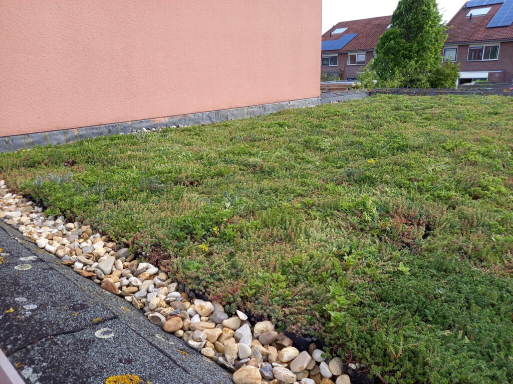 Groendak met sedum en grindstrook (direct na aanleg)
